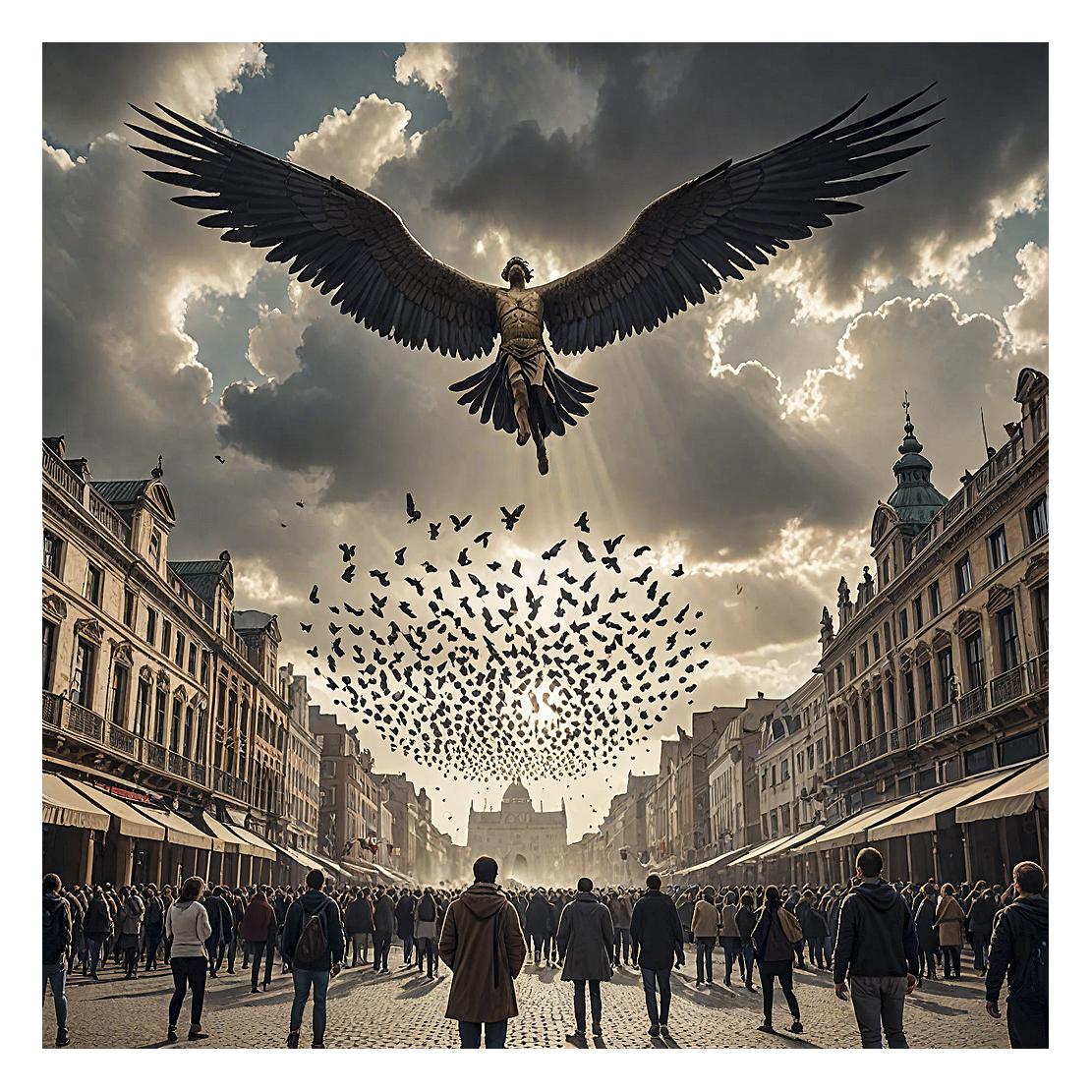 La créativité vient du malentendu ? L’I.A. n’a pas bien compris ou n’y arrive pas mais elle tente et la proposition est fascinante. Elle sauve (ou pas) mes idées à la con (un homme avec des ailes ? oui c’est bien Marvel mais encore…) pour les rediriger ailleurs. Elle rate dans les grandes largeurs, pour le meilleur et le pire monstrueux.